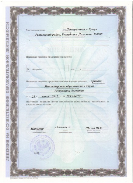 Адрес местонахождения образовательной организации* 368700, Республика Дагестан, Рутульский район, село Рутул, Центральная улица, дом 762